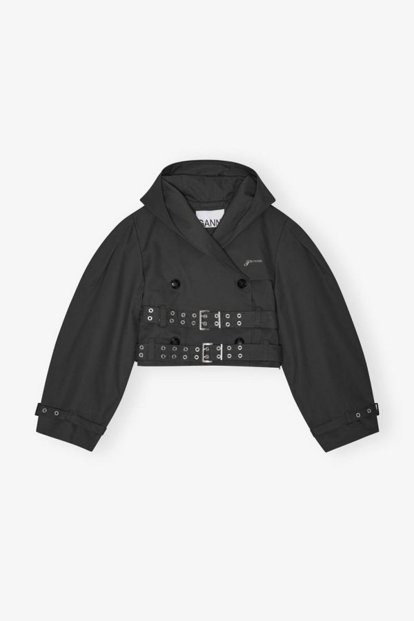 Women Coats & Jackets | GANNI Black Black Bonded Cotton Short Trench Jacket