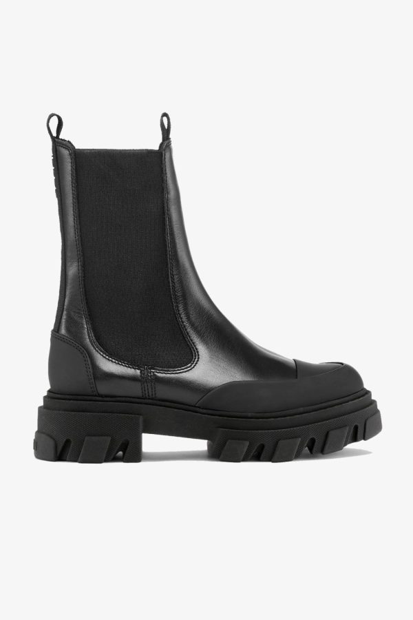 Women Boots | GANNI Black Cleated Mid Chelsea Boots In Black