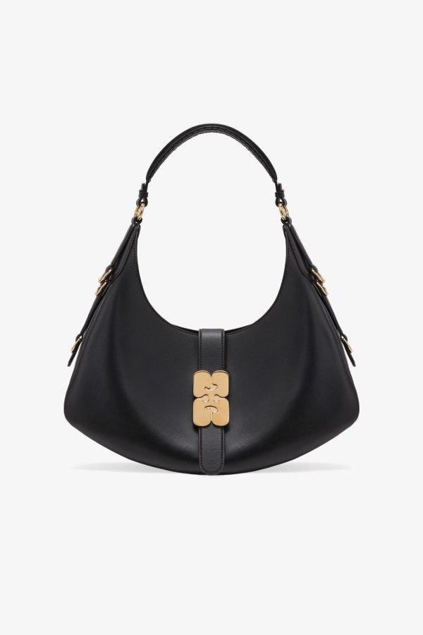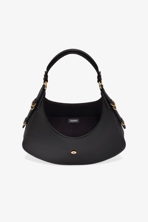 GANNI Black Kat Accordion Bag with Butterfly Clasp – Recycled Leather Shoulder Bag