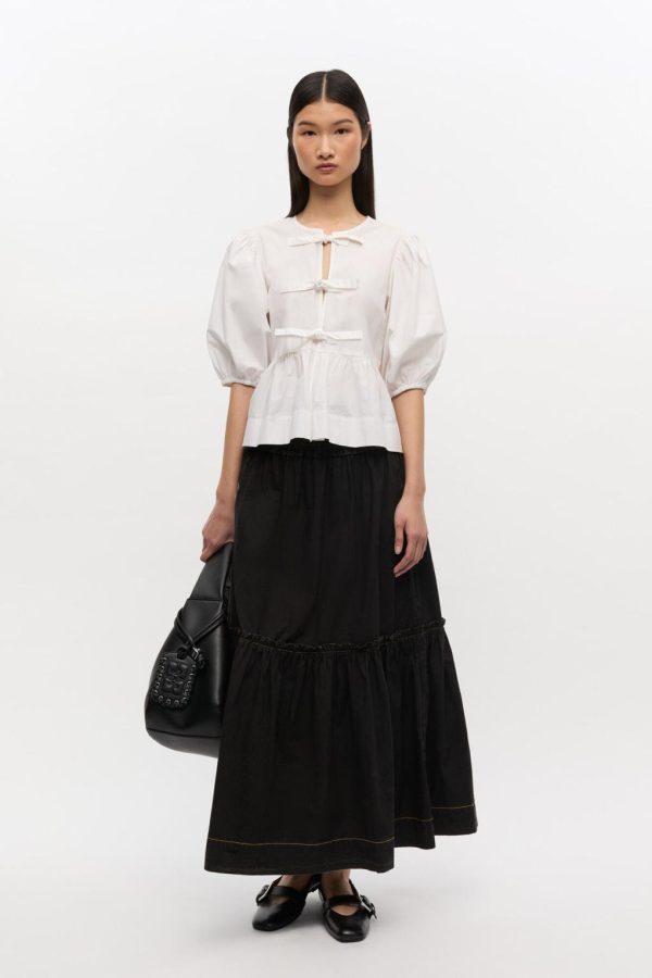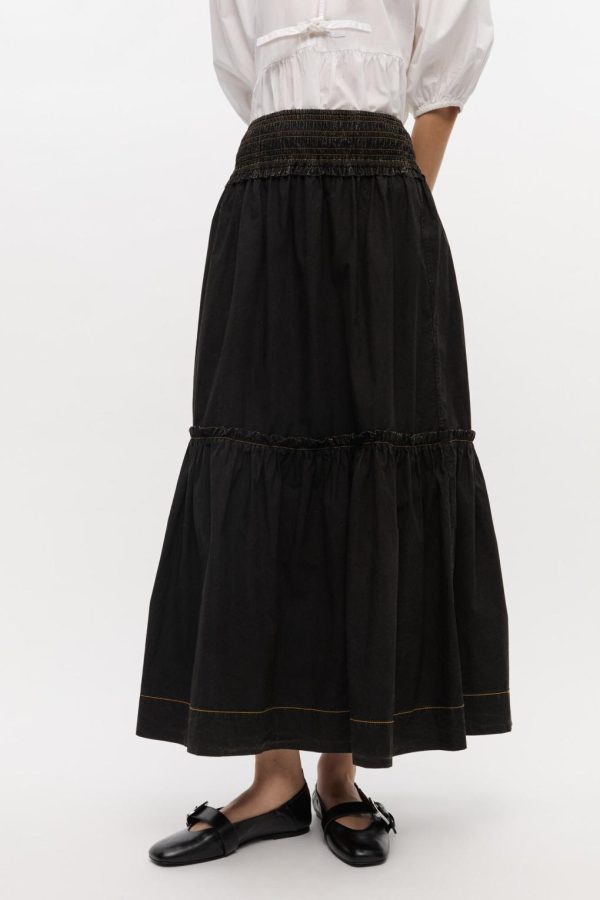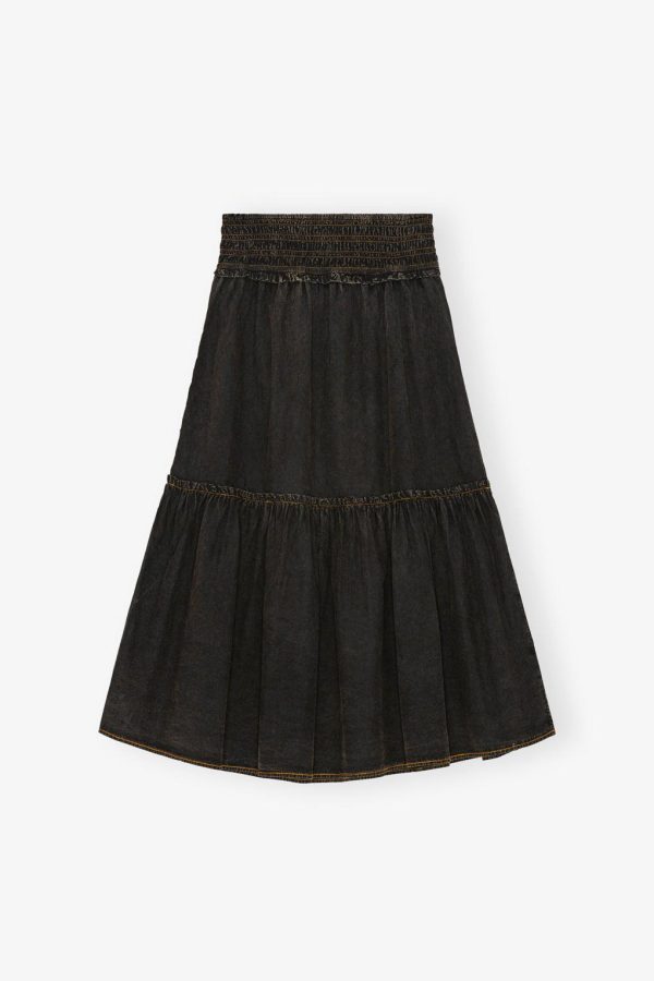 GANNI Black Washed Smock Skirt for Women | Tiered Organic Cotton Skirt