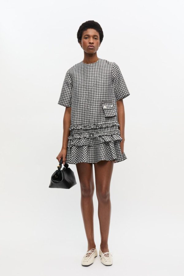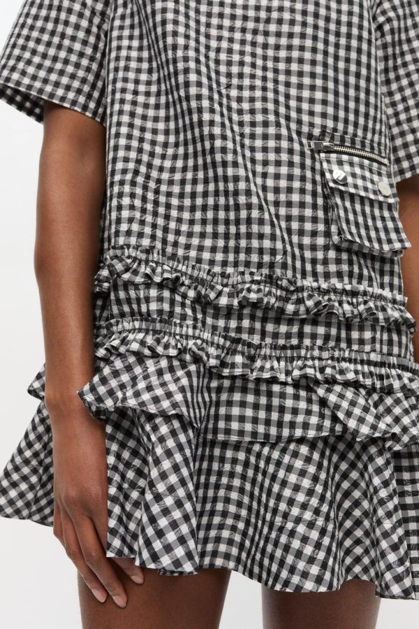 Women Dresses | GANNI Black Crinkled Check Mini Dress
