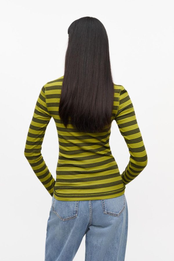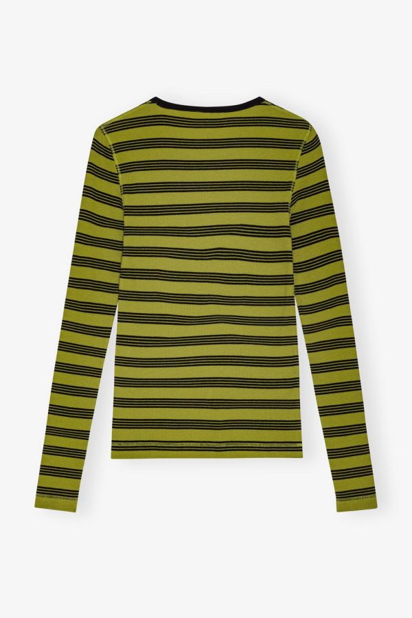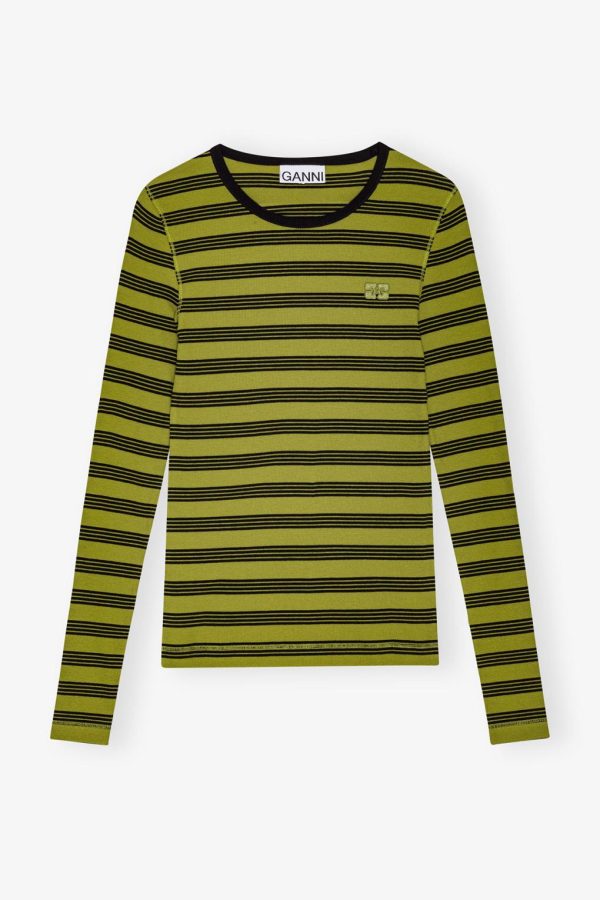 Women Tops | GANNI Golden Cypress Striped Soft Cotton Rib Long Sleeve T-Shirt