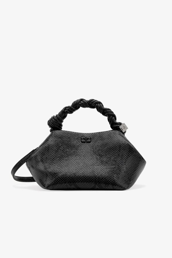 GANNI Croco Black Snake Small Bou Bag with Adjustable Strap & Butterfly Logo