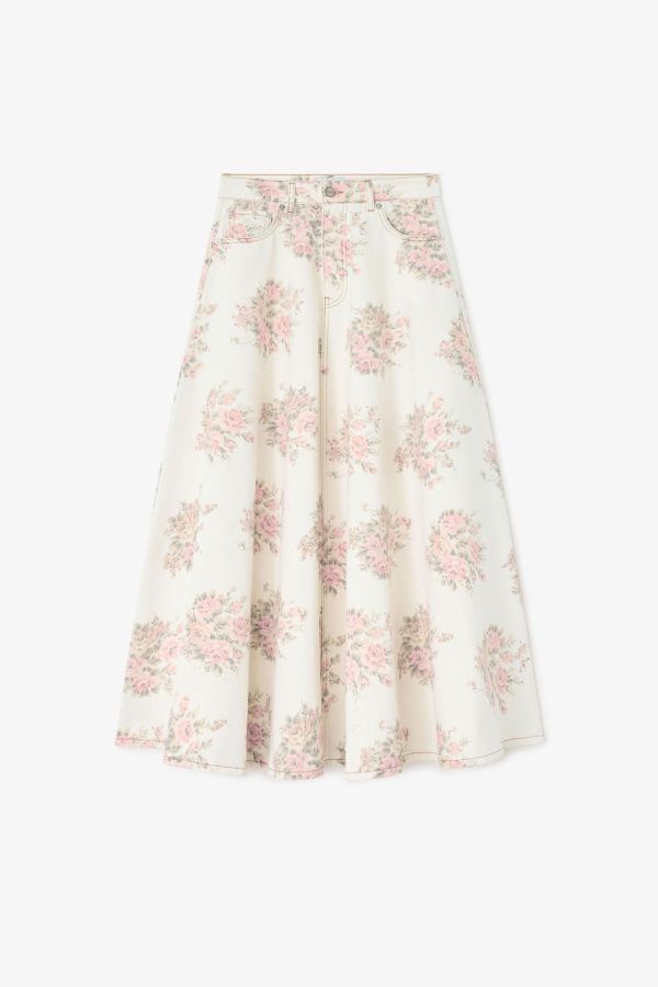 GANNI Floral Print Denim Maxi Skirt for Women | Organic Cotton with Pockets