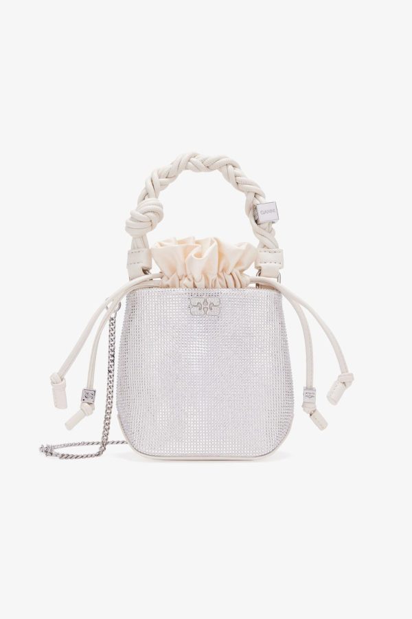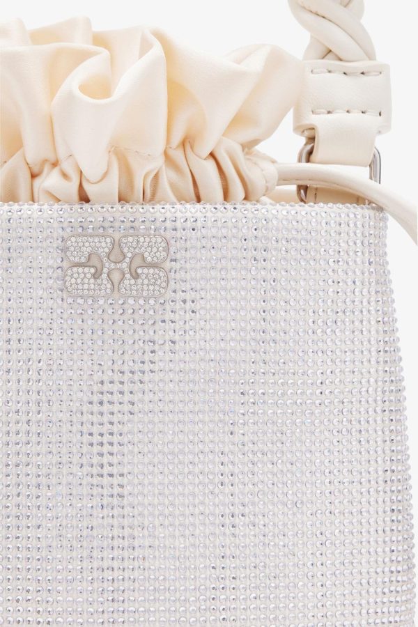 GANNI Ivory Bou Bucket Bag with Adjustable Strap & Drawstring Closure – Recycled Polyester Mini Bag