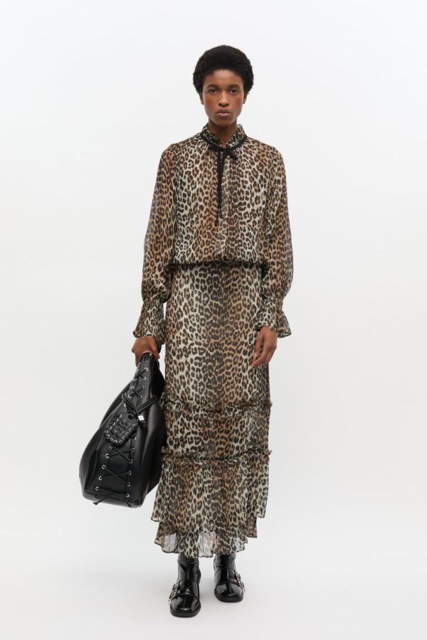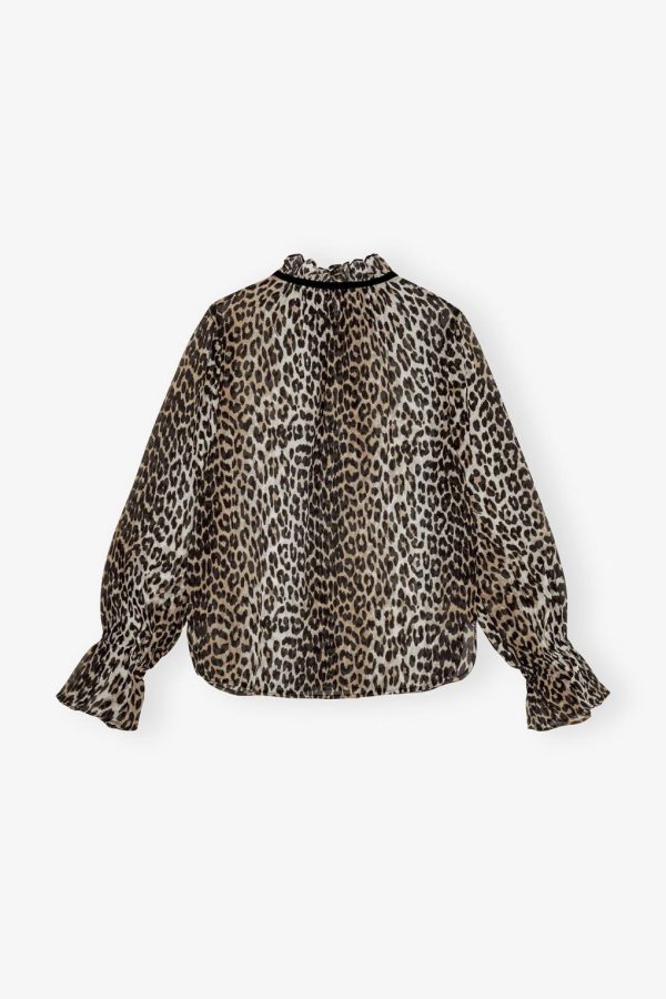 Women Tops | GANNI Leopard Leopard Print Chiffon Tie String Shirt