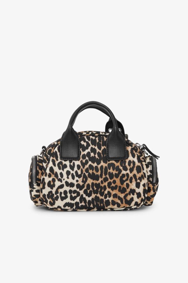 GANNI Leopard Print Top Handle Bag with Adjustable Strap | Recycled Nylon Mini Polochon