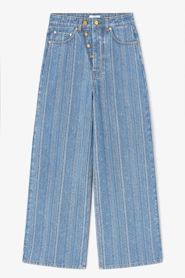 Women Trousers & Shorts | GANNI Mid Blue Stone Striped Baggy Jeans