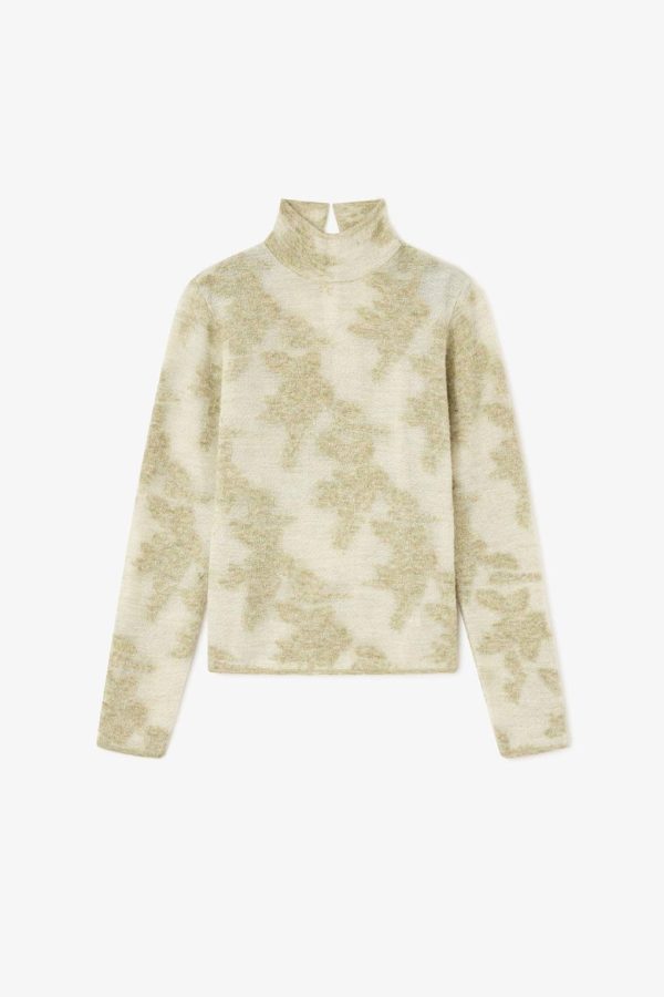 GANNI Olive Green Sheer Floral Turtleneck Sweater | Women’s Knitwear