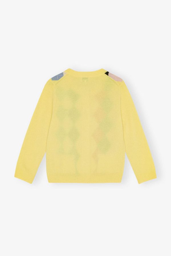 GANNI Pear Sorbet Yellow Check Cardigan | Women’s Merino Wool & Cashmere Knitwear