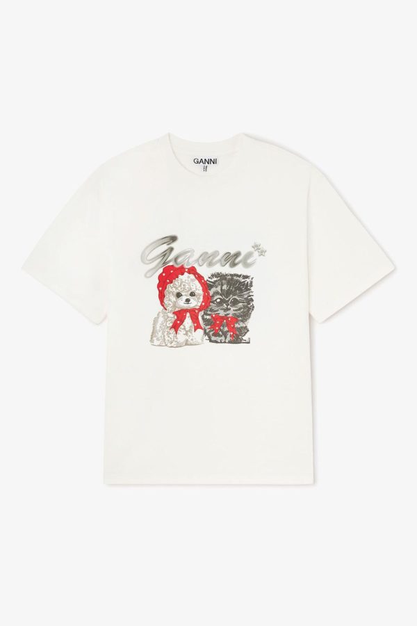 GANNI Women’s Animal Print T-Shirt | Ivory Egret Graphic Tee | 100% Organic Cotton