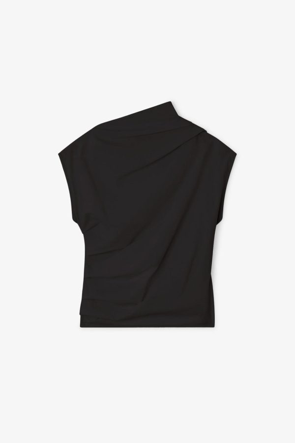 GANNI Women’s Black Ruched Sleeveless Top with Asymmetrical Neckline | Organic Cotton