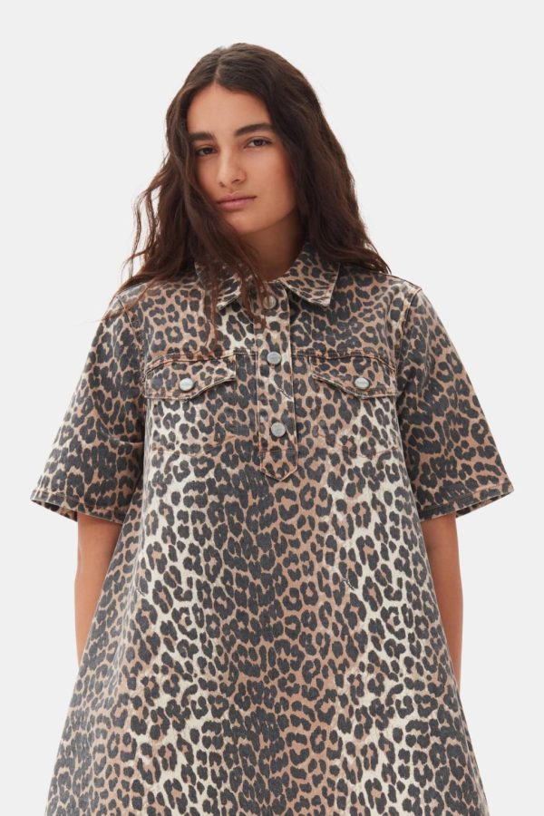 GANNI Women’s Leopard Print Mini Dress | Organic Cotton with Front Pockets