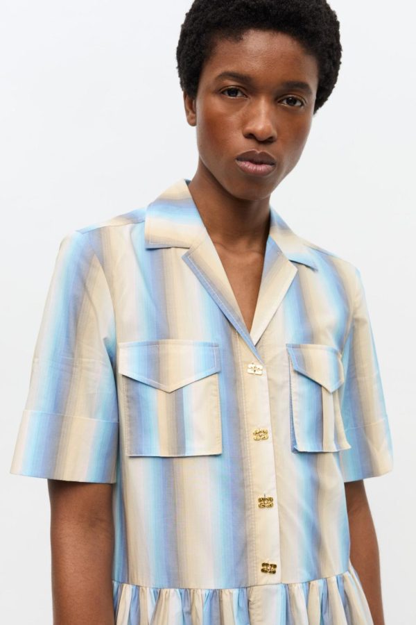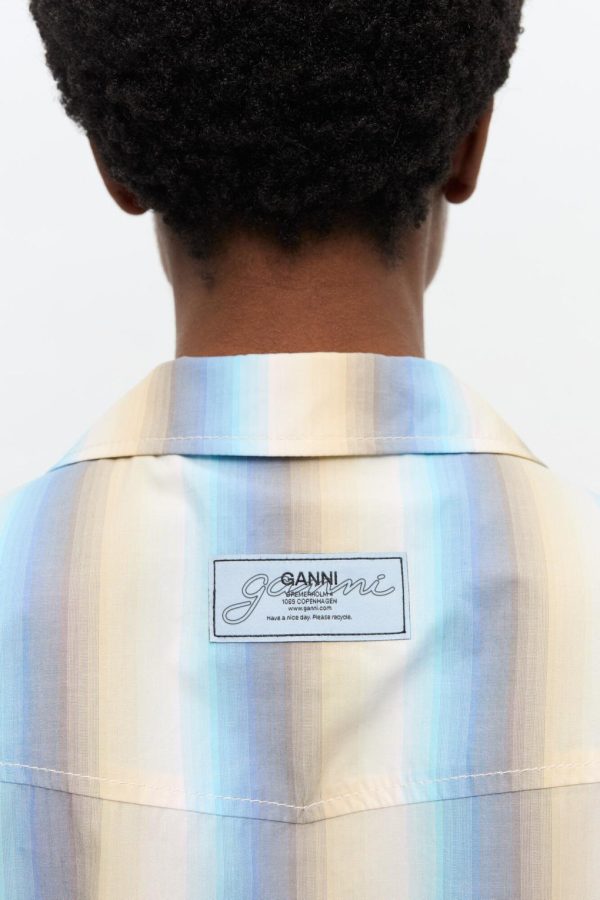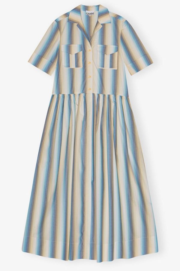 GANNI Women’s Multicolor Ombre Striped Maxi Shirt Dress | 100% Organic Cotton