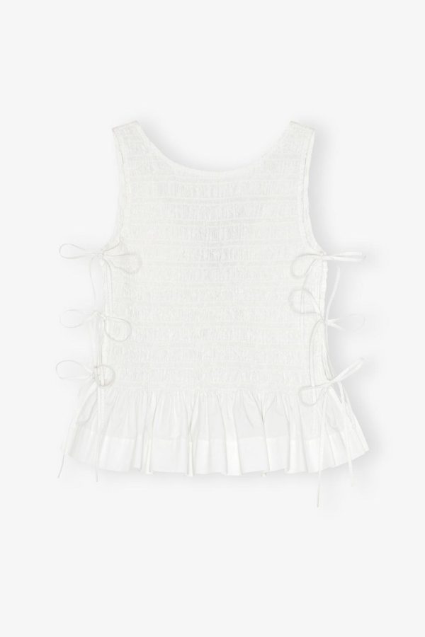Women Tops | GANNI Bright White White Cotton Smock Tie Top