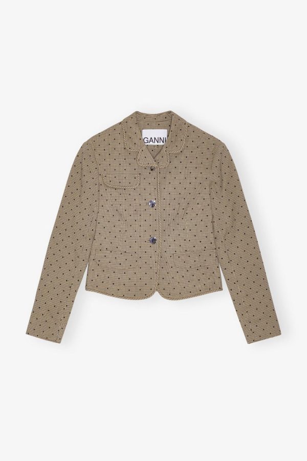 Crafted from a LENZING™ ECOVERO™ Viscose blend, this Flock Check Suiting Blazer is effortlessly refined yet versatile—a feminine take on classic tailoring. Designed in a slim fit with a cropped length, it features a check pattern with delicate flocked dots and decorative pockets, while the hemline is finished with a contrasting check pattern.