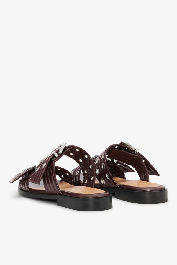 Women Flat Shoe & Sandals | GANNI Tawny Port Feminine Buckle Two-Strap Sandals In Burgundy