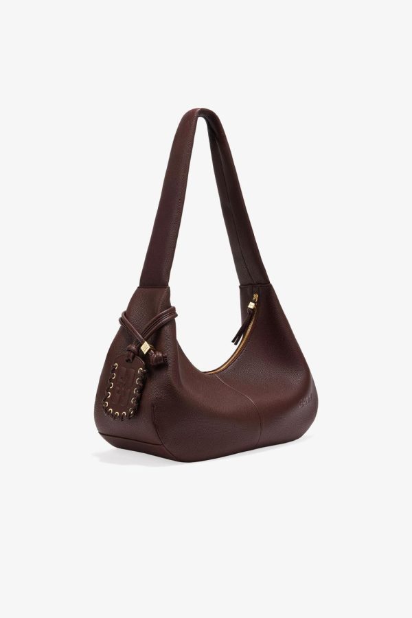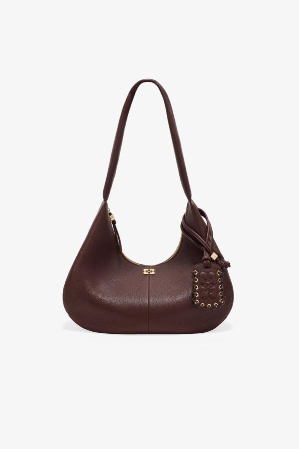 Women Hobo | GANNI Chicory Coffee Brown Grained Medium Hobo Bag
