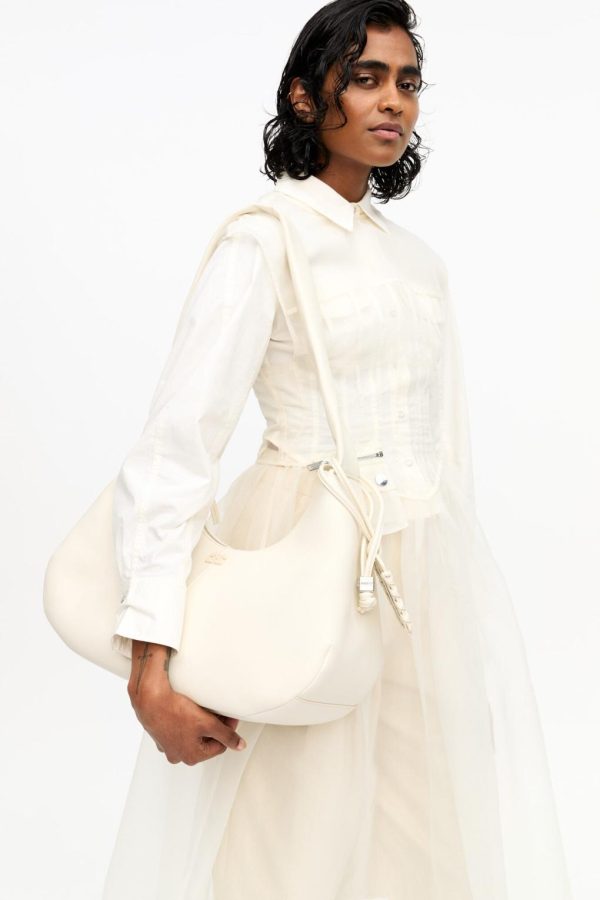 The bag is the silhouette of our Spring/Summer 2025 runway. It is crafted from recycled leather with a super soft, supple finish, featuring a mirror hangtag, and silver-tone hardware.