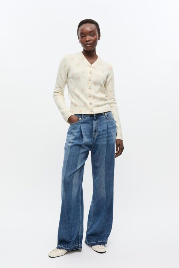 This cradigan features a v-neckline, a button closure, long sleeves and ribbed edges.