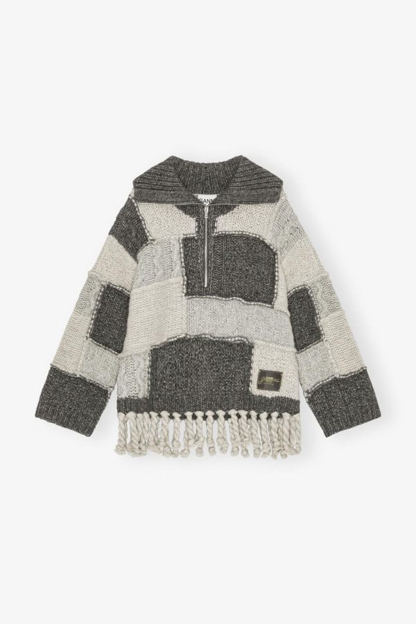 Women Knitwear | GANNI Multicolour Patchwork Fringe Jumper