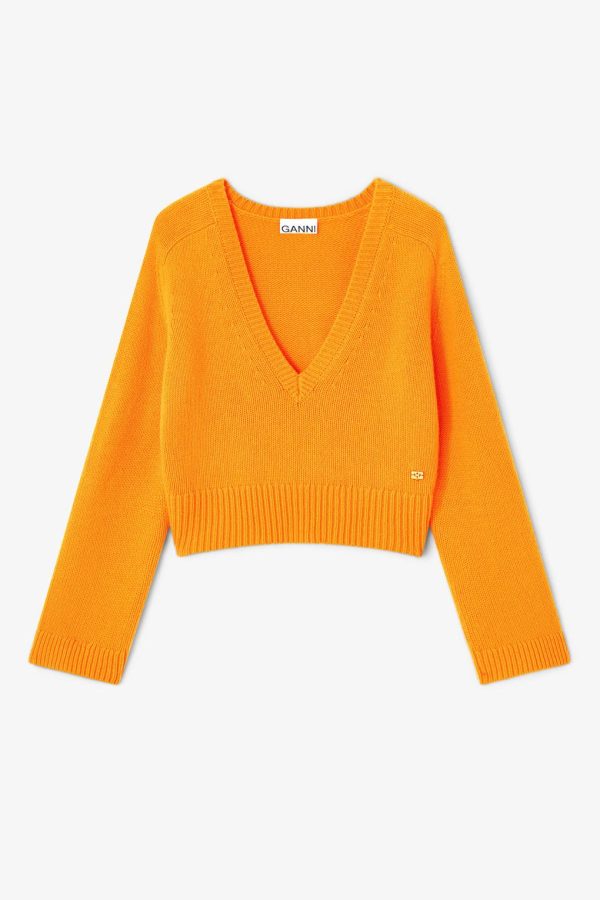 This jumper features a deep v-neckline, long sleeves with rib edges and a GANNI Butterfly logo at the side.