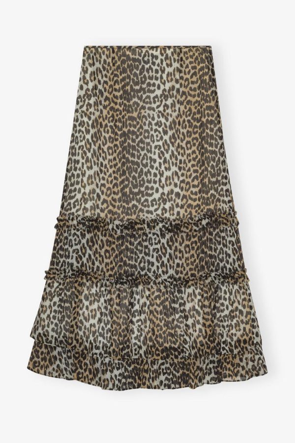 Women Skirts | GANNI Leopard Leopard Print Long Chiffon Ruffle Skirt