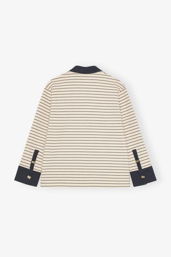 This polo features stripped pattern, a contrasting collar, gold-tone GANNI Butterfly buttons and a GANNI logo patch at them hem.