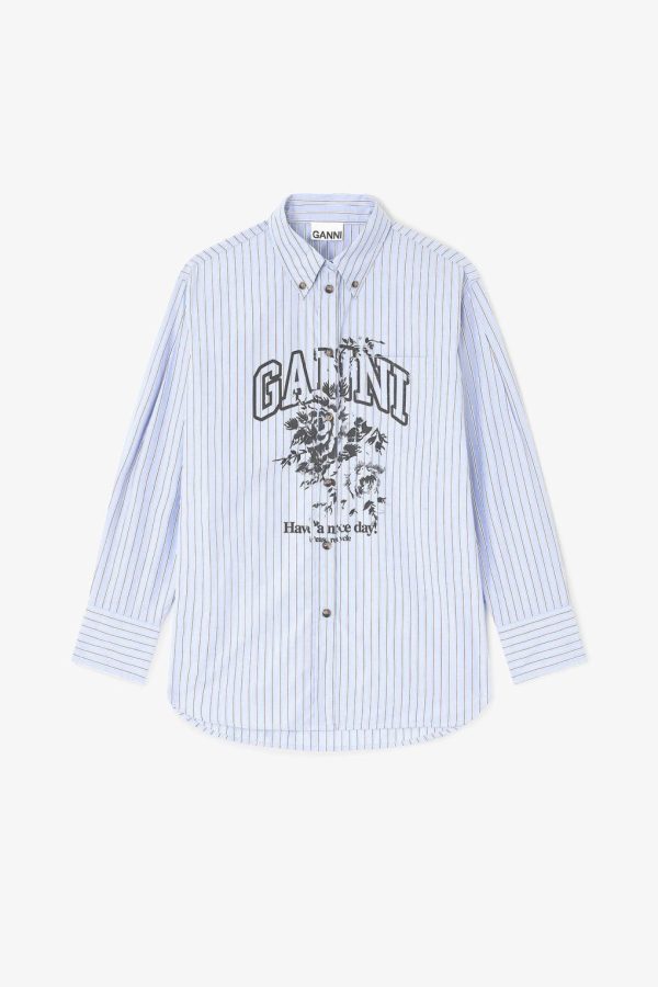 This shirt features a classic collar, button-front closure, a chest pocket and a GANNI logo.