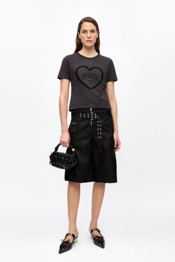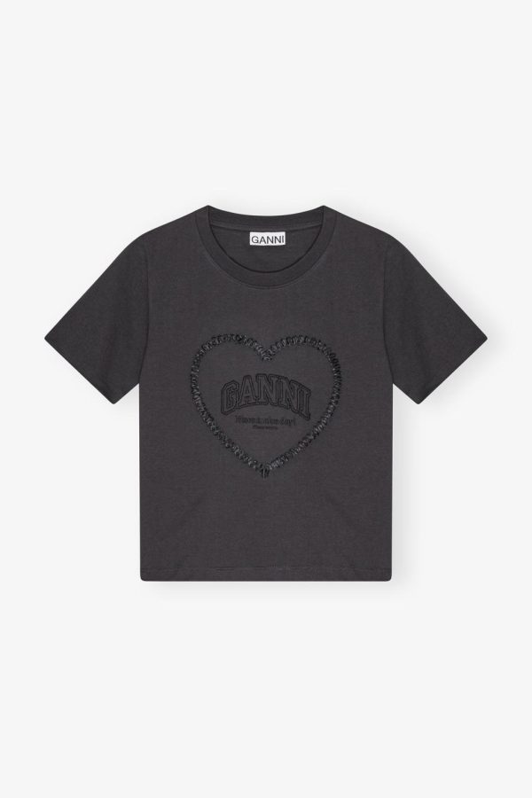 - Embroidered heart with GANNI logo