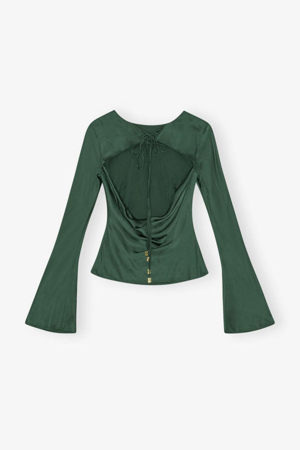 Women Tops | GANNI Pineneedle Green Satin Blouse