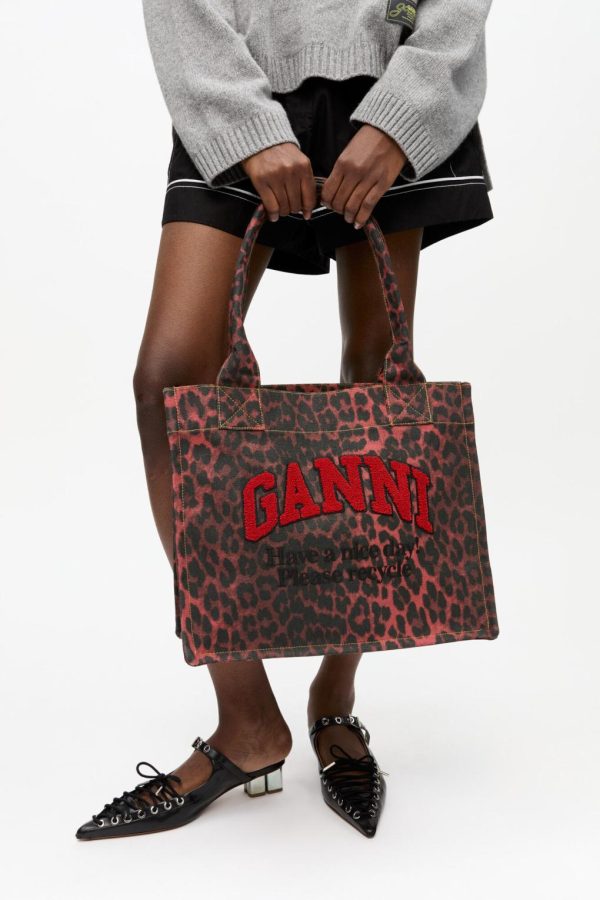 Women Tote | GANNI Racing Red Red Leopard Large Tote