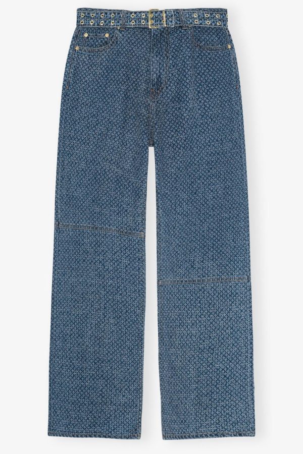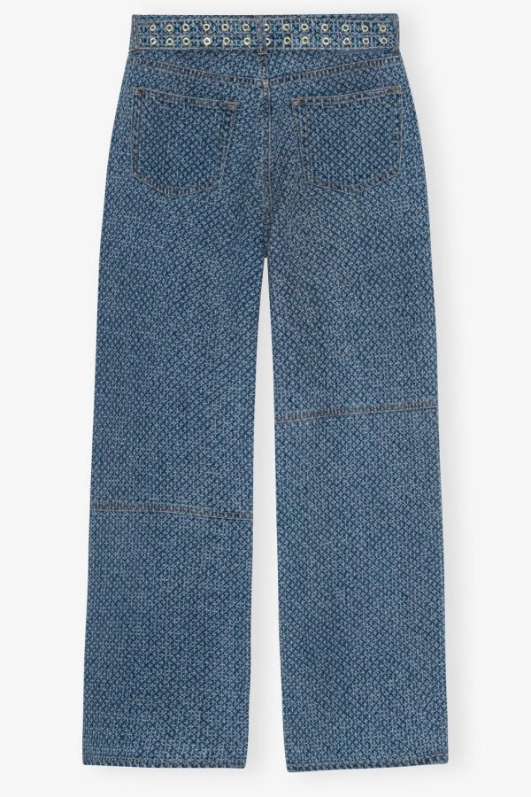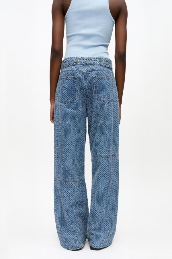 Women Trousers & Shorts | GANNI Mid Blue Stone Blue Textured Izey Jeans