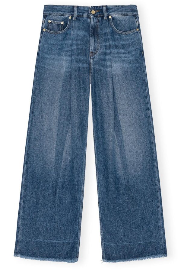 Women Trousers & Shorts | GANNI Mid Blue Vintage Blue Pleated Jeans